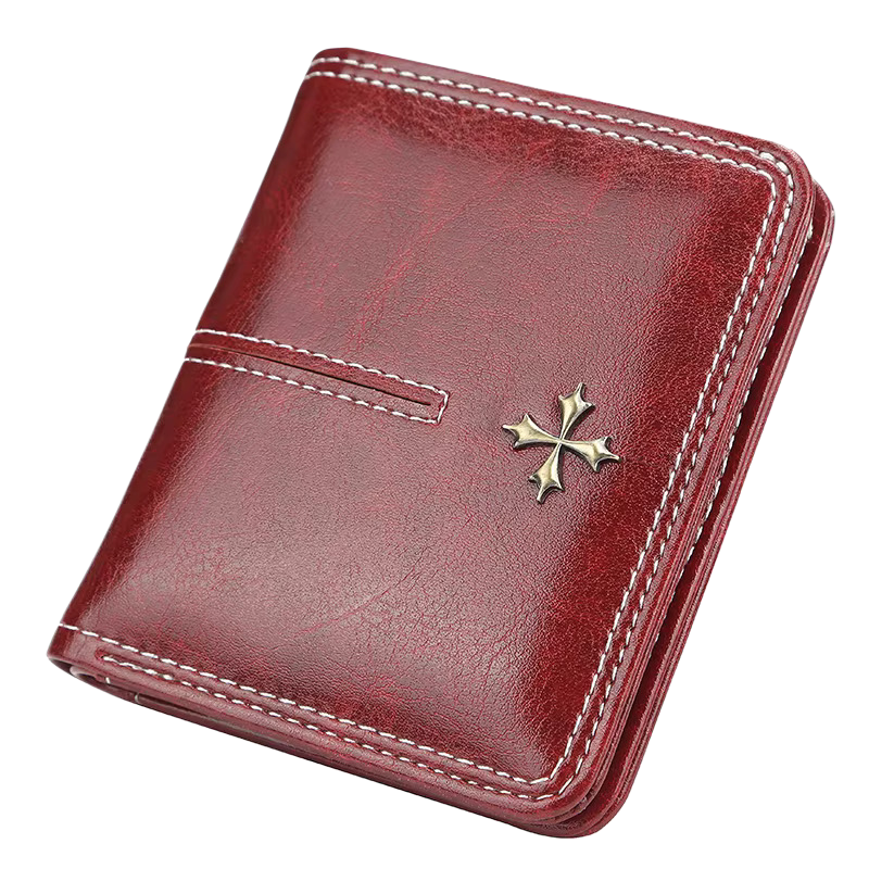 Compact, stylish, and functional. This bifold wallet features a unique metal cross emblem and a premium textured finish. Designed with multiple card slots, a transparent ID window, and a secure zipper pocket for coins. Perfect for minimalist daily use or as a unique gothic-inspired gift.
